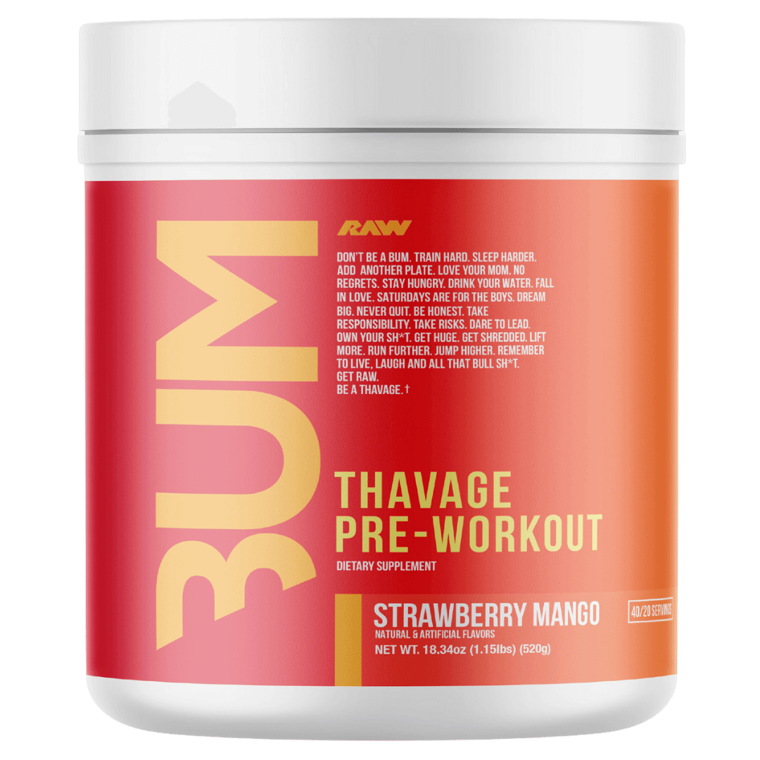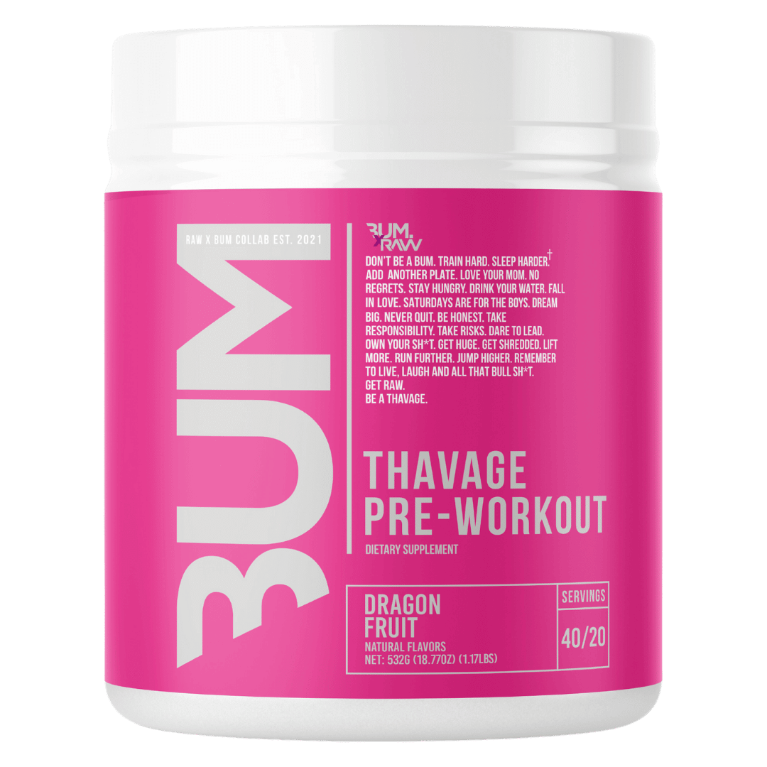 CBum's personally crafted blend in Thavage contains everything you need for ultimate performance, providing mental focus and energy to fuel your workouts. With 260mg of caffeine per 2 scoops and delicious flavors personally created by Chris Bumstead, Thavage comes in a convenient 40-serving tub.