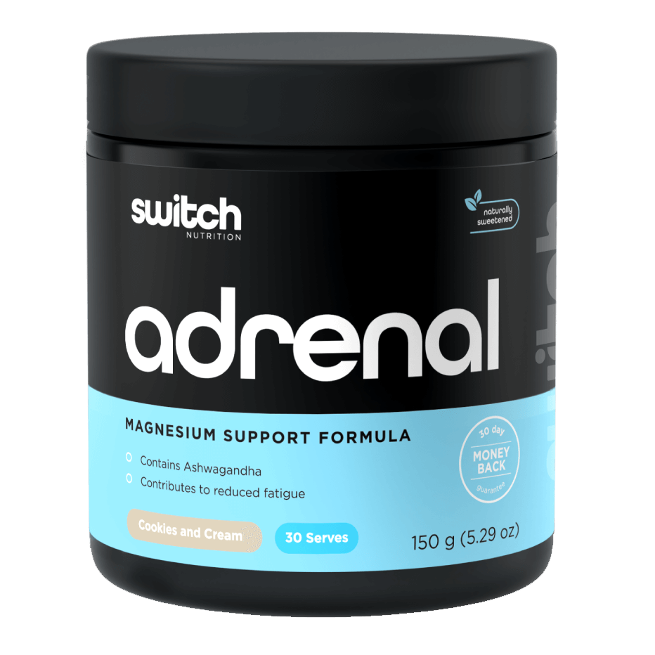 ADRENAL SWITCH™ is quickly becoming Australia's #1 Selling Vegan Magnesium Adrenal Formula with the perfect combination of standardized Ashwagandha, bio-available Magnesium, Zinc, Vitamin B6, L-Theanine, L-Leucine and L-Glycine to support your bodies systems that drive your workouts, help you rest and recover.