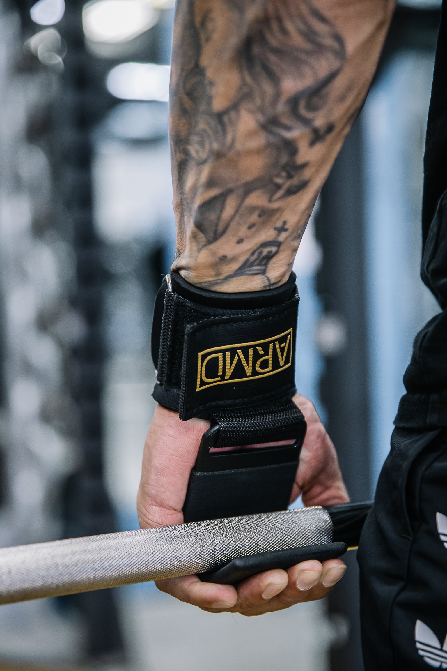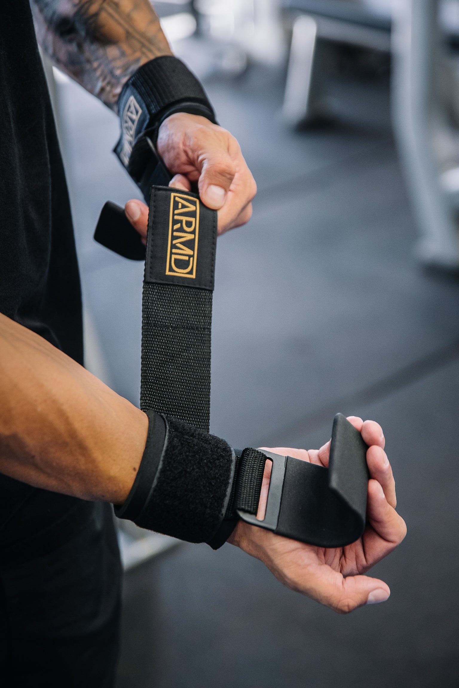 Using both a supinated and pronated grip (overhand and underhand), incorporate our ARMD Power Hook Lifting Straps for all press and pull movements at your next session.