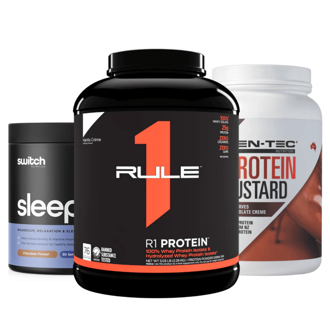 - 1 x Rule 1 WPI (Whey Protein Isolate) - 72 Serve – Fuel your muscles with fast-absorbing protein for daytime energy and muscle repair.