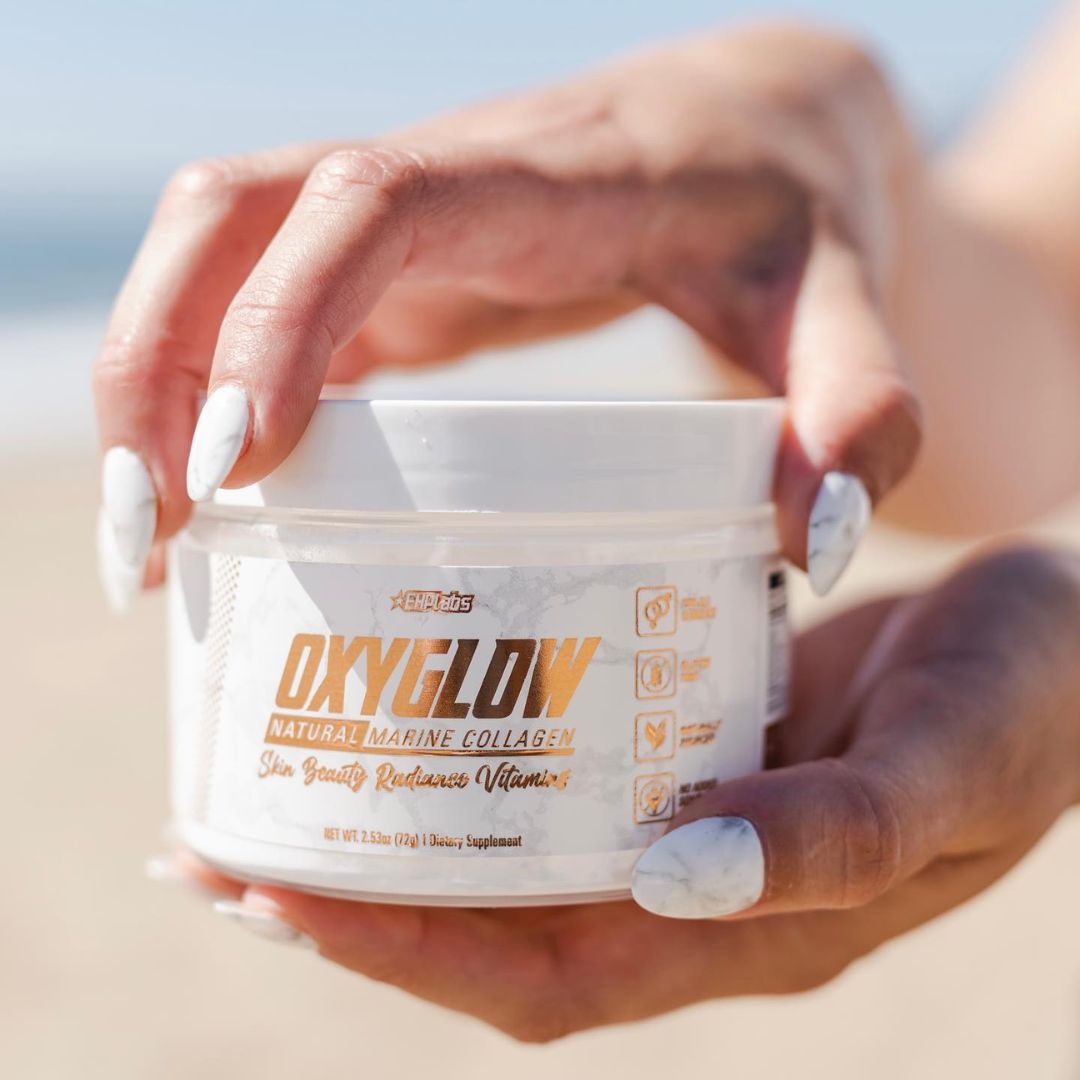 OxyGlow is a natural marine collagen powdered supplement with essential collagen-boosting vitamins designed to promote youthful skin, healthy hair and strong nails.