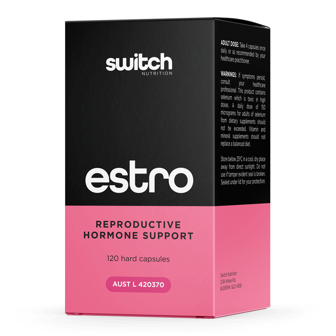 Start your new, naturally energized life with Switch Nutrition Estro Switch! With a combination of evidence backed ingredients, designed to support your beauty and radiance from the inside out, you can feel confident that you’re getting the best out of every serve! Consume 2 capsules twice daily with food, it’s as simple as that! Capsules can be opened and sprinkled into water, shakes or smoothies if desired – the choice is yours. It’s never been easier to balance your body the natural way, than with Switch Nutrition Estro Switch!