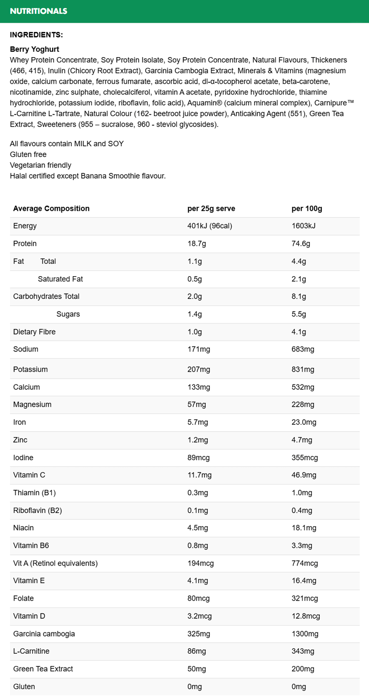 *While Sculpt is not formulated as a meal replacement specifically, and is not a ‘diet shake’, it can be used for meal supplementation. Sculpt is not to be used as a sole source of nutrition and has been designed to work best with a balanced nutrition plan including whole foods, and an exercise regime that includes resistance training and aerobic activity.