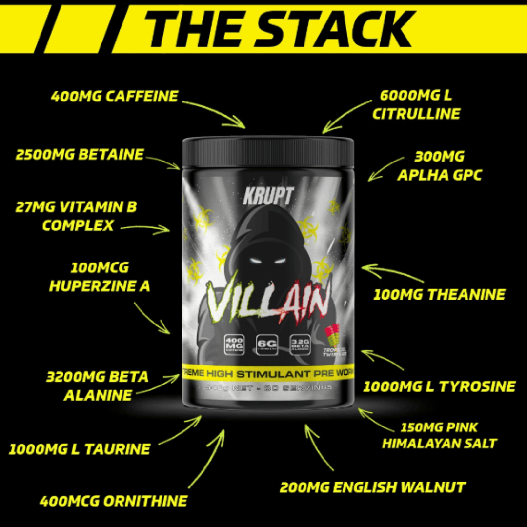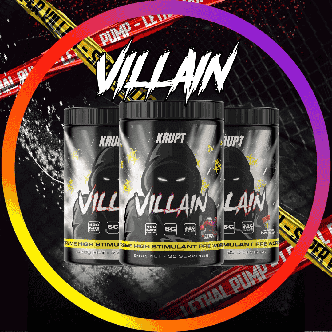 Villain contains an EXTREME High Stimulant Formula mixed with clinically dosed, High Quality Ingredients. Containing a true 30 serves and created by listening to what you all wanted and then making it even better!