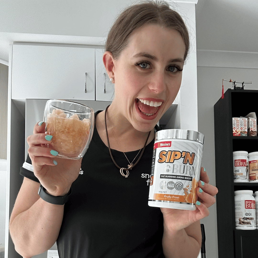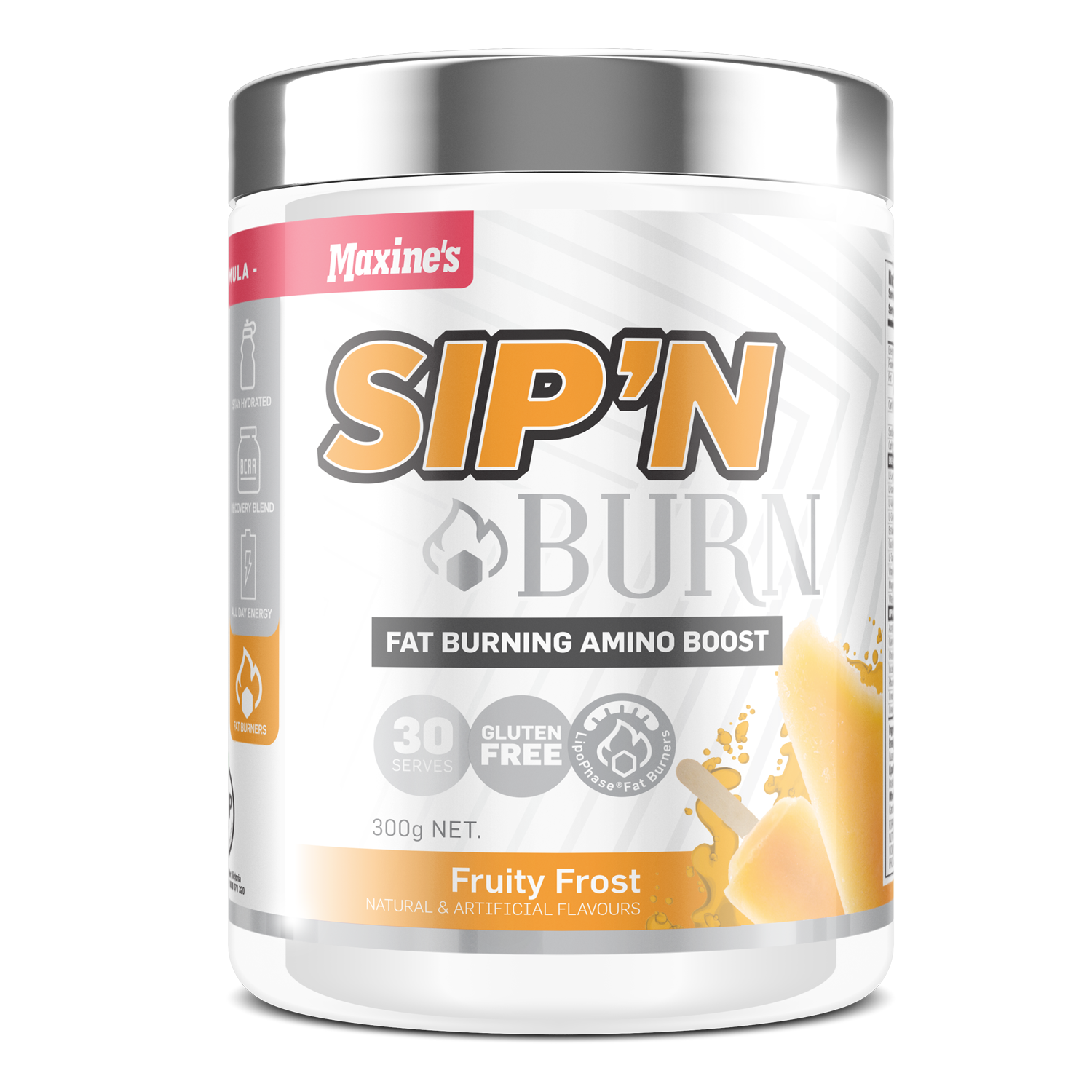 Maxine’s SIP’N BURN is a high potency Energy Boosting Amino formula that can be sipped on during workouts and throughout the day to help optimise performance and keep your body hydrated for optimum recovery and reduced muscle soreness.