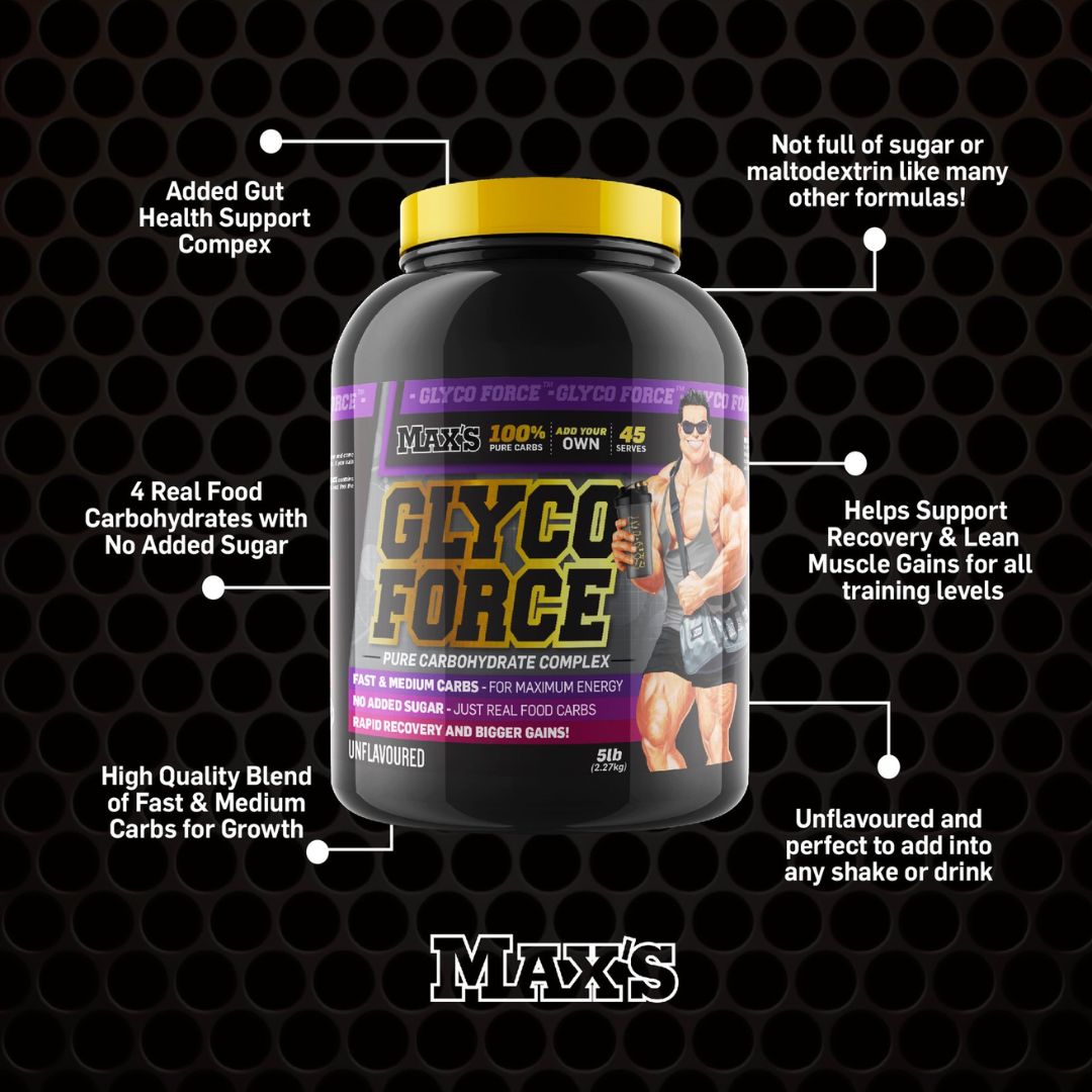 Unlike other carb products, MAX’S Glyco Force is a clean source of 4 real carbohydrates with no added sugars.