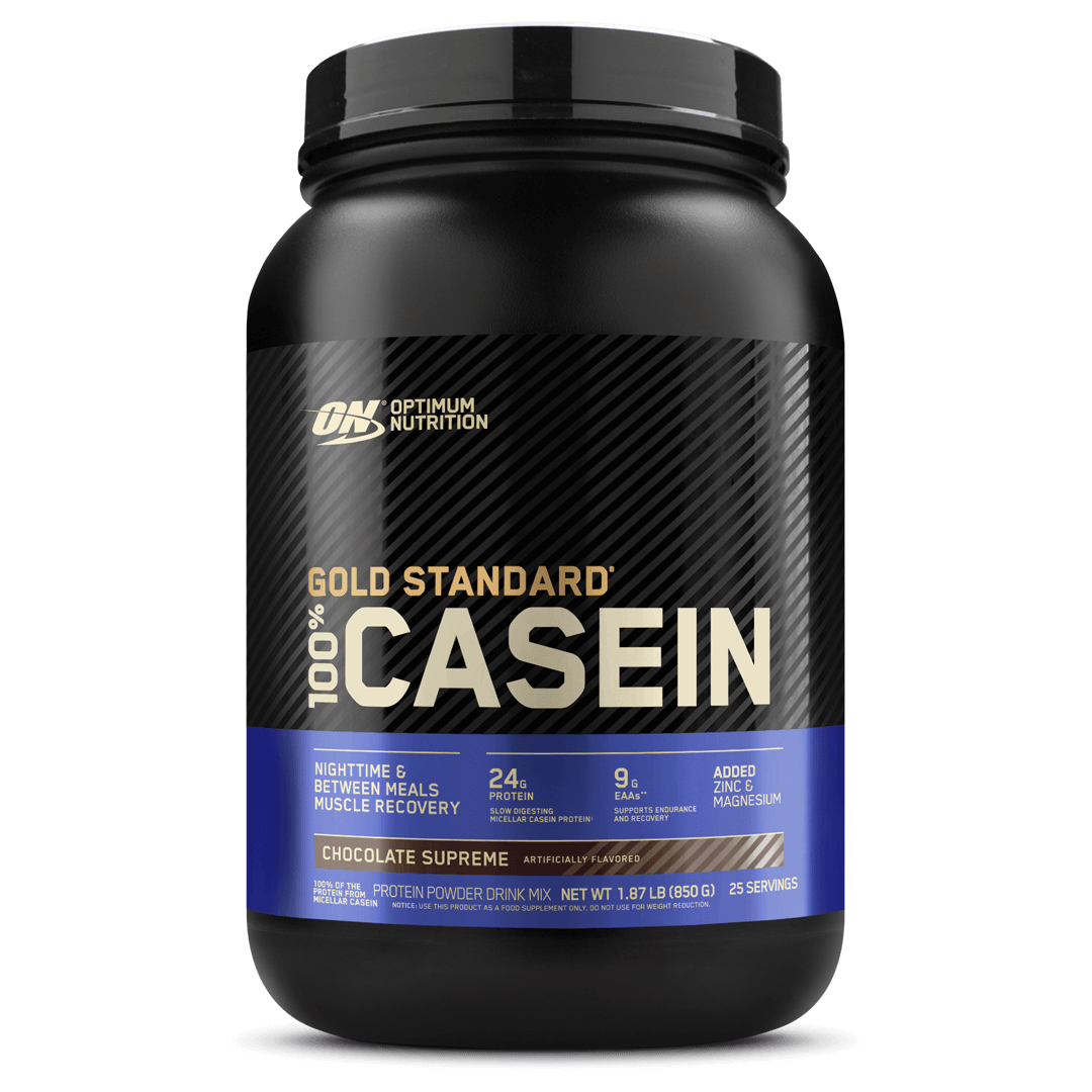 Casein, a slower digesting and absorbing protein can be used after exercise, between meals or before bed to help support satiety and muscle recovery. GOLD STANDARD 100% CASEIN™ delivers BCAAs to recovering muscles for several hours. By using only premium micellar casein as a protein source, we’ve created a protein powder that sets the GOLD STANDARD® for slow digesting protein support.