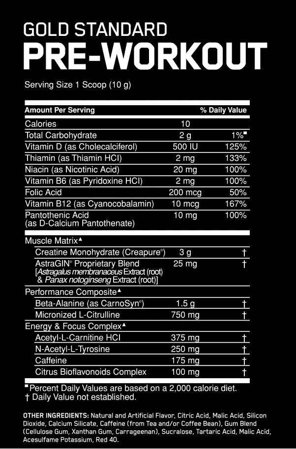 ON's new Gold Standard Pre-Workout unleashes amplified energy, focus, and supports enhanced endurance to help you reach the pinnacle of your game, crush your next set, get that last rep, and achieve some true gains. Whatever your goals, accomplish them all with the pre-workout from the most trusted brand in sports nutrition.