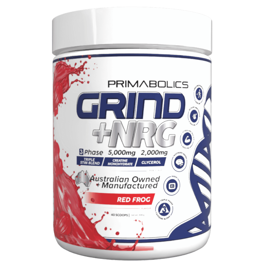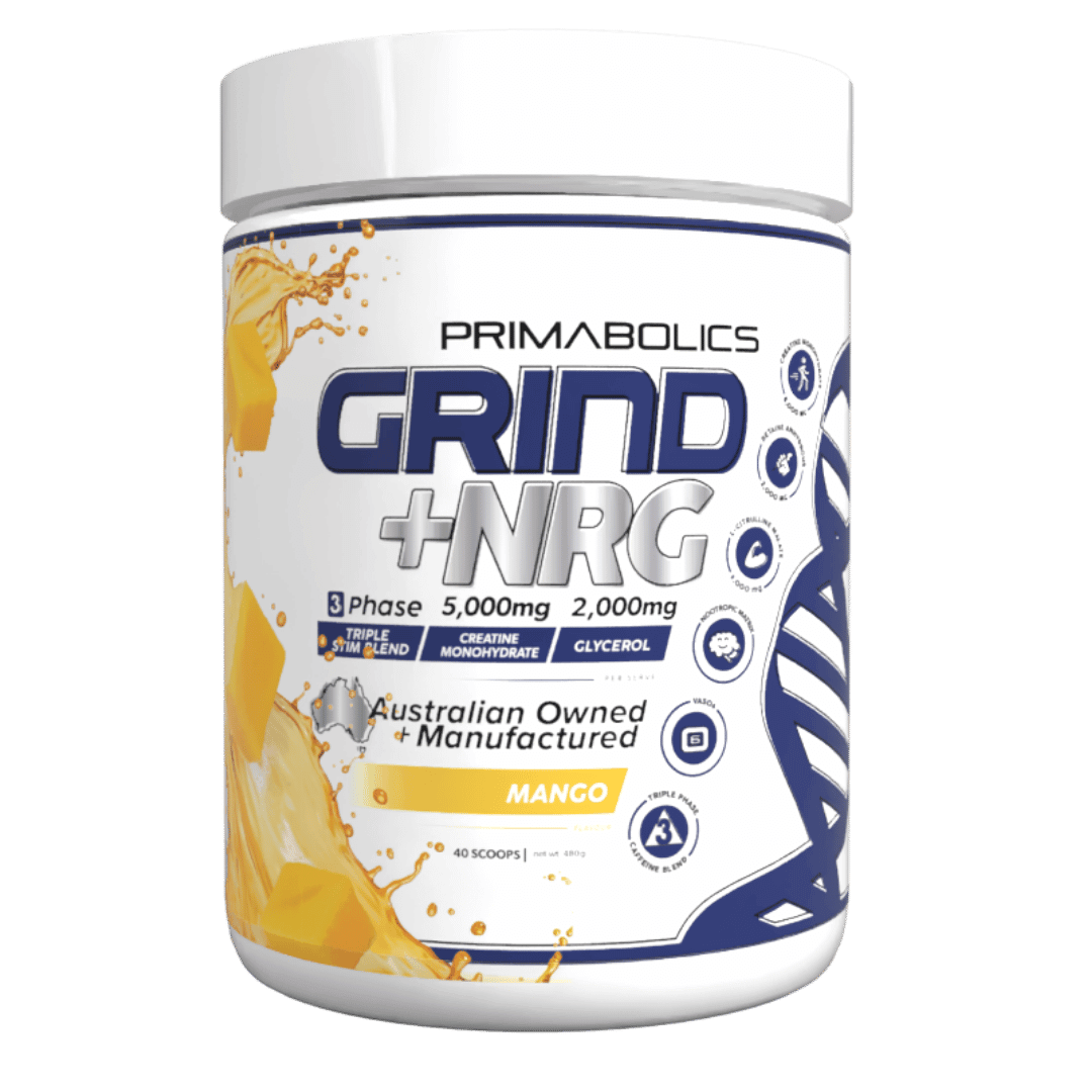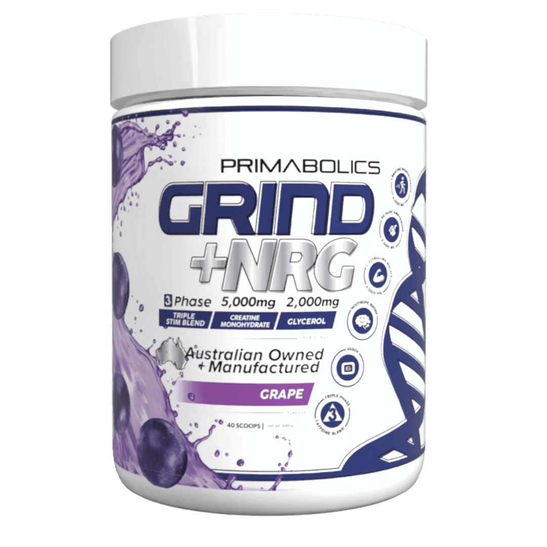 Engineered with clinically dosed ingredients, GRIND+NRG is the perfect partner to Primabolics' stimulant free pre workout GRIND.