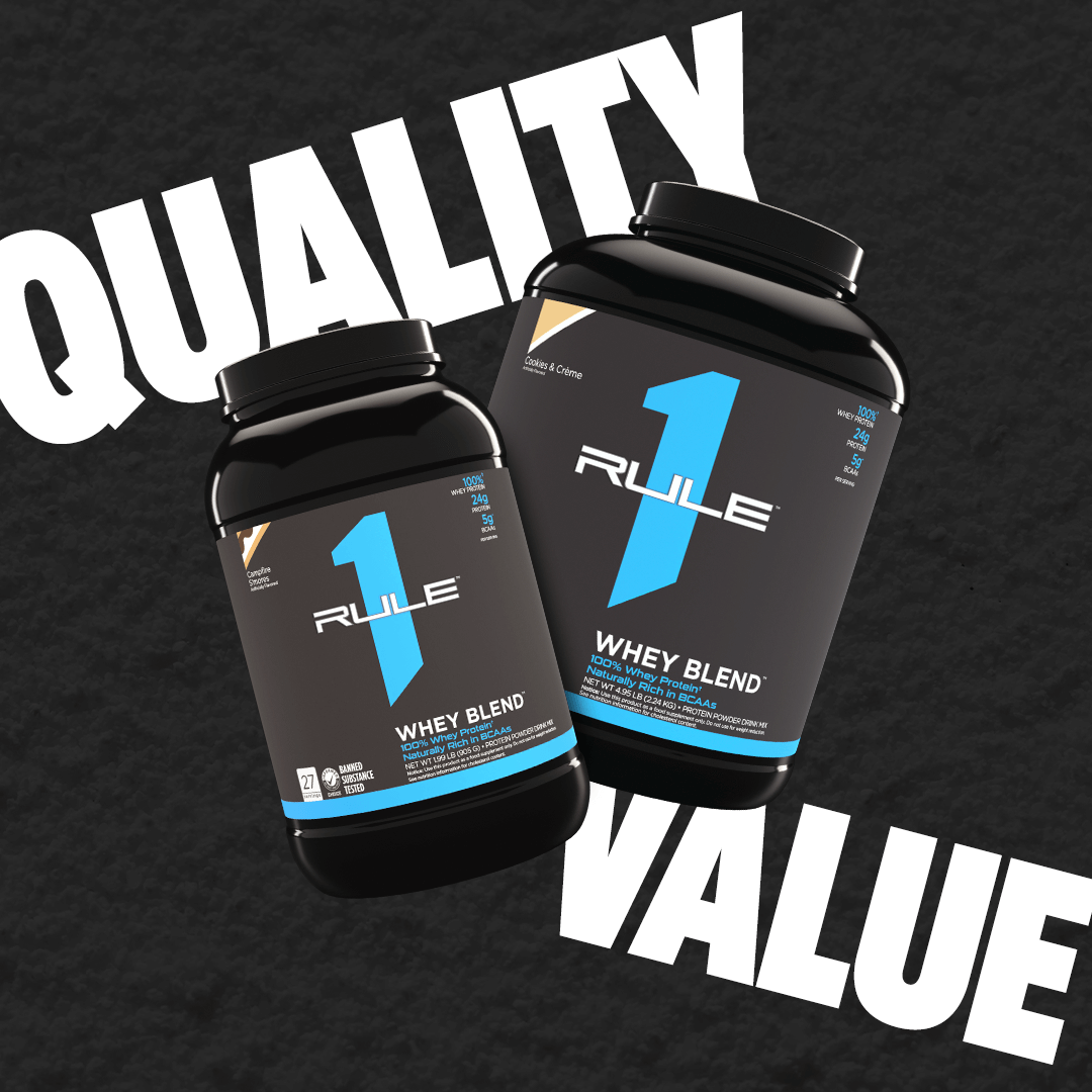 Rule 1 Whey Blend is a multi-phasic whey protein supplement designed to be used in any phase, including but not limited to daily as a snack, post workout or before bedtime.