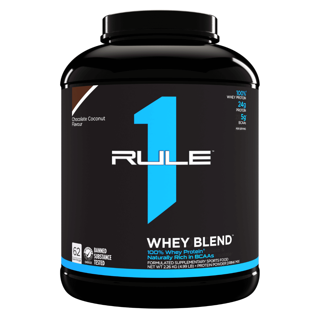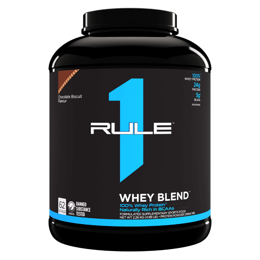 Rule 1 Whey Blend is a 100% whey protein only protein blend, packed with naturally derived Branched Chain Amino Acids (BCAA), a second to none flavouring system and an optimal multi-phasic release blend of high-quality whey proteins at a maximum bang for a minimum buck.