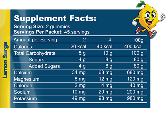 Take 2-4 gummies daily to replenish electrolytes and support hydration throughout the day.