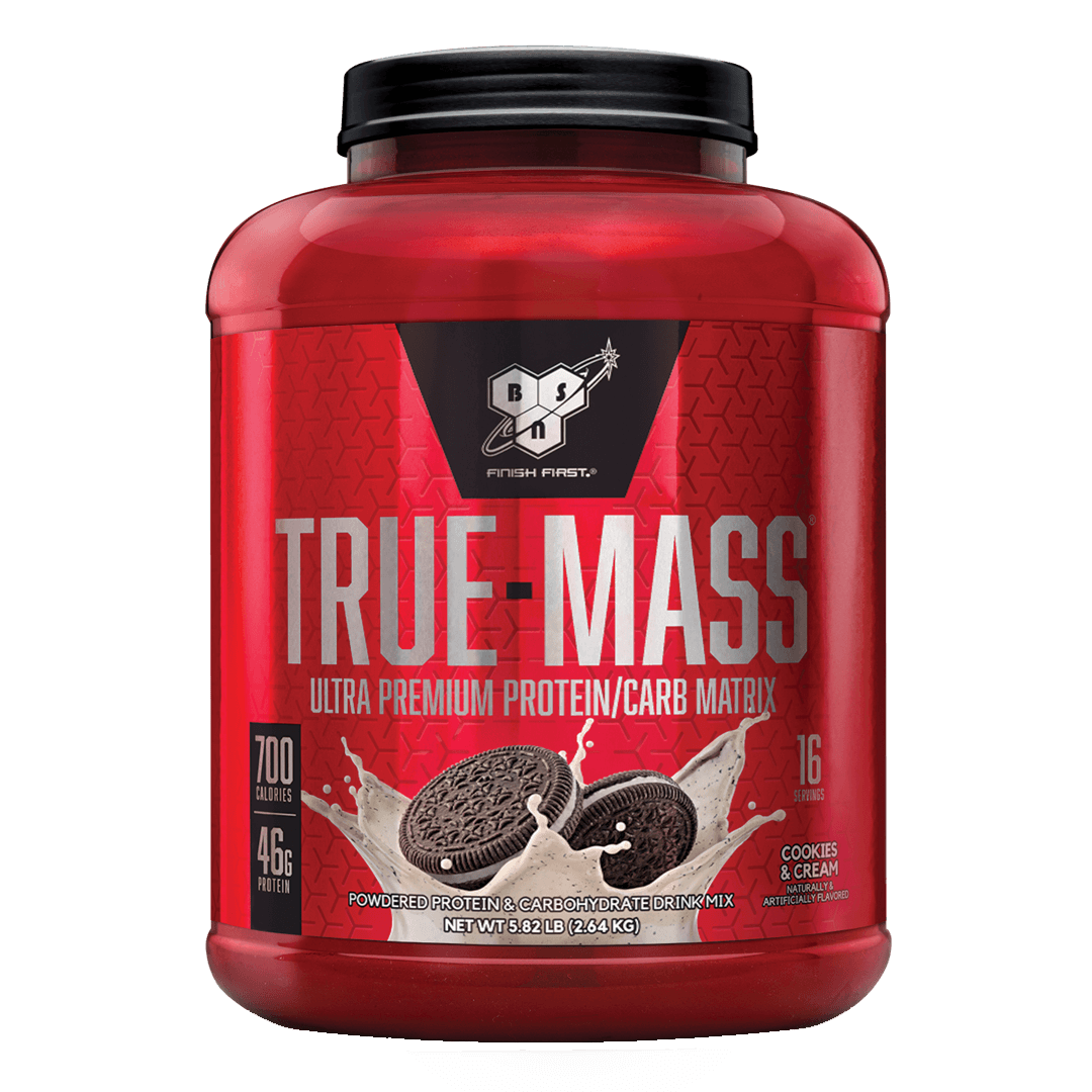 BSN TRUEMASS is a macronutrient-heavy lean mass gainer tailored specifically towards people looking for the additional caloric support necessary to maximize lean muscle mass gains, and for individuals that require a heightened level of nutrients owing to a higher metabolic rate. TRUEMASS contains a multi-functional A.M. to P.M. protein blend that feeds your muscles for up to 8 hours, a blend of complex carbohydrates that provides useable energy for your muscular frame, along with Medium Chain Triglycerides (MCTs) and Essential Fatty Acids (EFAs) for heart health and hormonal support. Further fortifying TRUEMASS is the addition of Branched Chain Amino Acids (BCAA's) for positive nitrogen balance, fiber for nutrient uptake, glutamine peptides for recovery and glutamine alpha ketoglutarate for maximal anti-catabolic effects.
