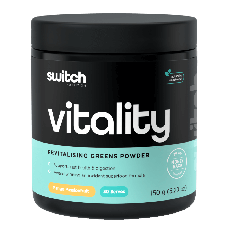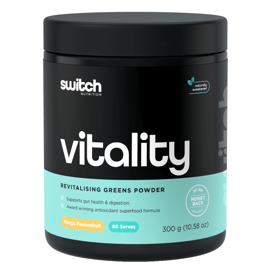 Looking for the next step to support your health, energy and performance? Vitality Switch is a great-tasting superfood blend - getting your daily nourishment has never been simpler, or more affordable. Simply consume 1 serving with breakfast or whenever a healthy boost is needed! Whether you’re in a tough training cycle, preparing for exams, or simply want to up your health and wellness – Switch Nutrition Vitality Switch is a great addition to prevent poor health and boost your vitality!