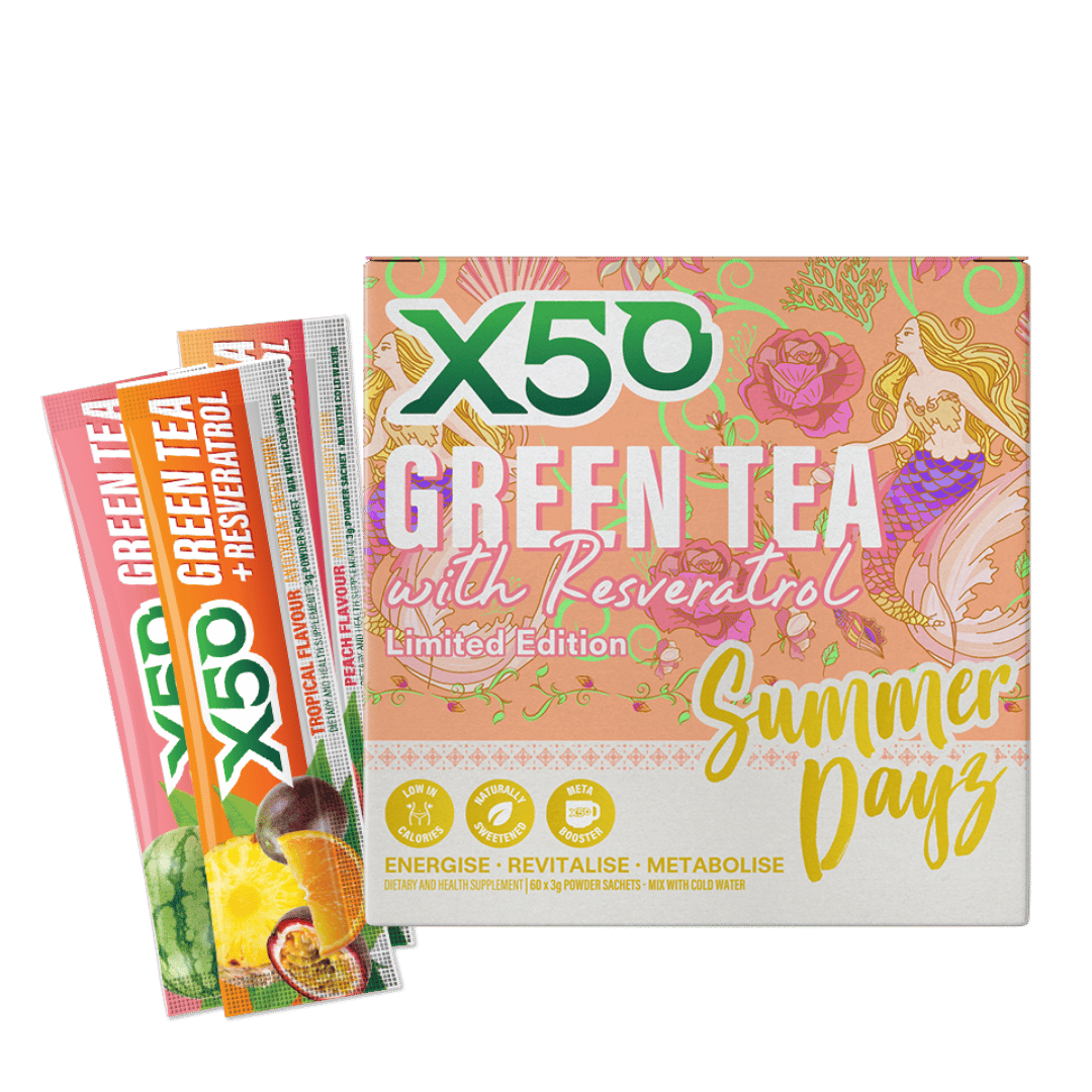 X50 Lifestyle Green Tea is a healthy natural energy drink that’s fantastic for energy, detox and weight loss. It has no artificial additives and preservatives, and each sachet is the antioxidant equivalent of up to 20 cups of regular green tea.